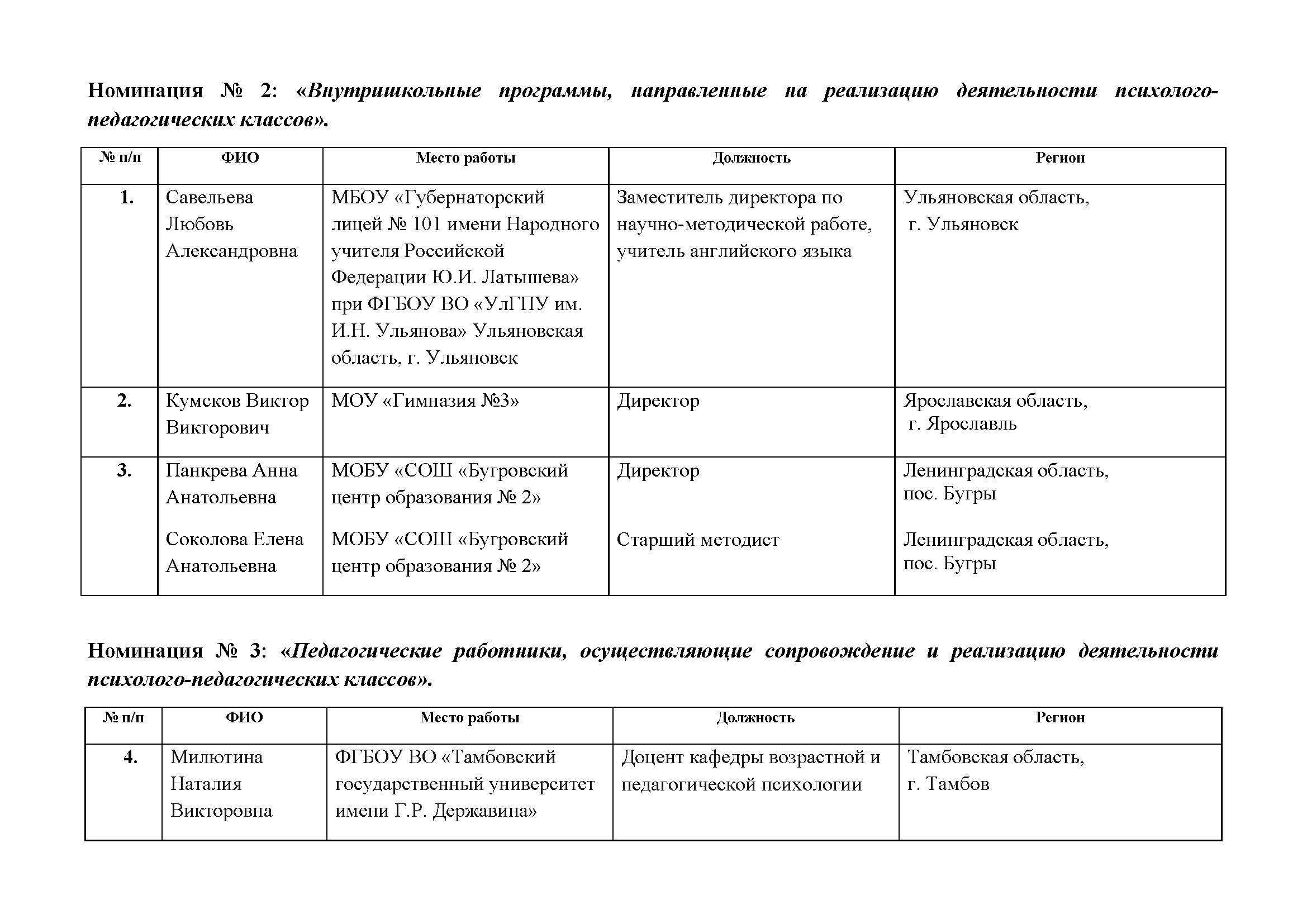 Внутришкольные программы, направленные на реализацию психолого-педагогических классов |